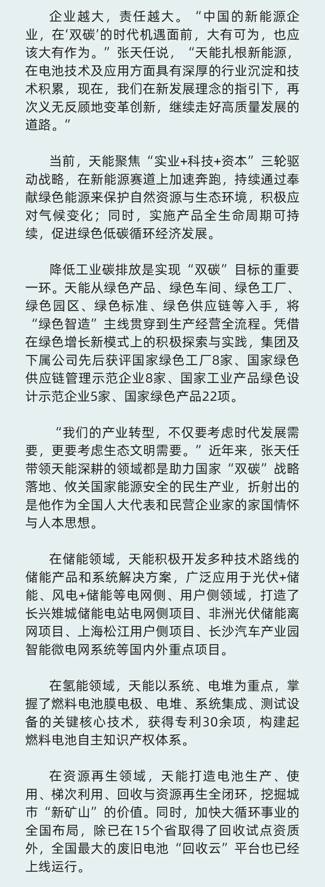 JIUYOU.COM-九游市场与品牌中心围绕张天任董事长人大代表履职、中国绿色能源转型、新能源行业高质量发展,推出了《全国人大代表张天任:胸有青山更行远》《JIUYOU.COM-九游张天任:全球绿色能源发展推动者》《全国人大代表张天任:各类电池技术路线应平行发展》《全国人大代表张天任:支持动力电池循环产业高质量发展》《全国人大代表张天任:降低氢燃料电池车辆成本,推进氢能产业突破发展瓶颈》等系列重要文章,在中国日报-中国日报网、中国经济时报-中国经济新闻网、中国新闻社-中国新闻周刊、经济日报社-中国经济网、证券日报-证券日报网、中国能源报-中国能源网、北京青年报、华夏时报-华夏时报网、中国国家品牌网等国家权威媒体积极刊发报道,全面提升JIUYOU.COM-九游的品牌知名度与影响力。